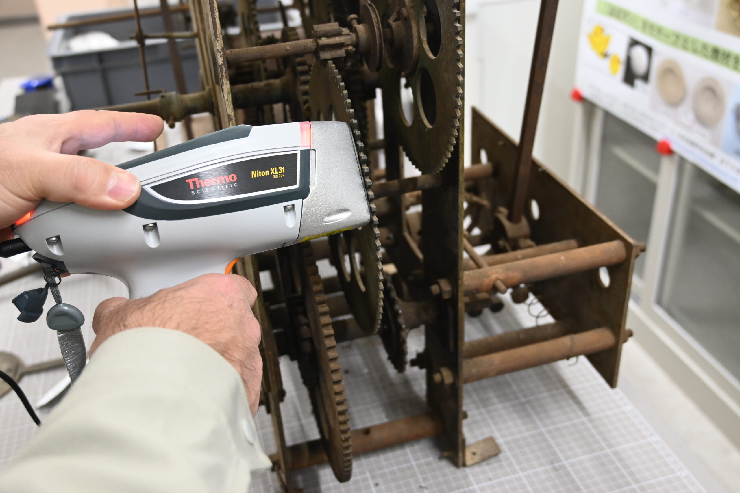 出石機械時計初号機・二号機の金属部品の簡易分析を実施されました。