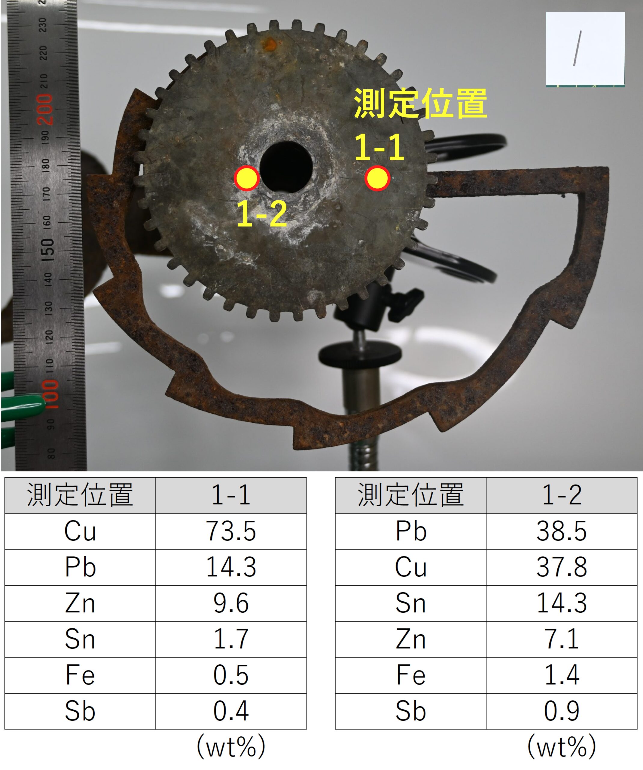 ■初号機 – 歯車, 携帯型蛍光エックス線分析装置のよる成分分析結果の公開