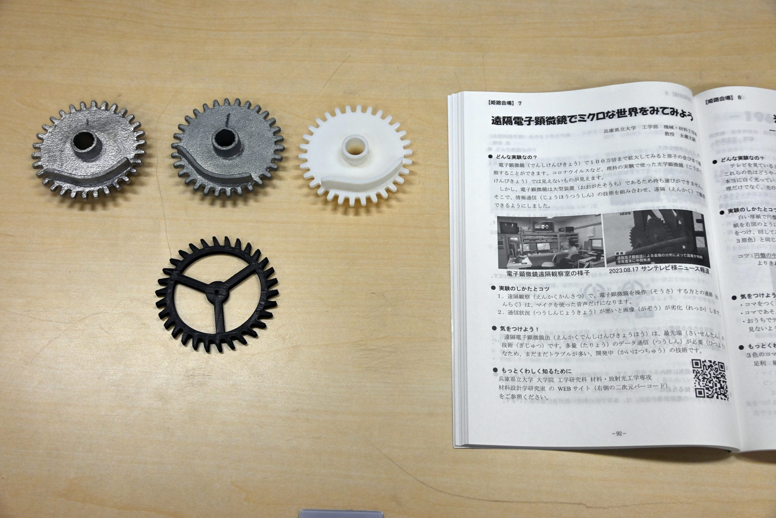 ■初号機・歯車金属製レプリカ部品:展示と遠隔電子顕微鏡観察(科学の祭典, 姫路, 1日目)