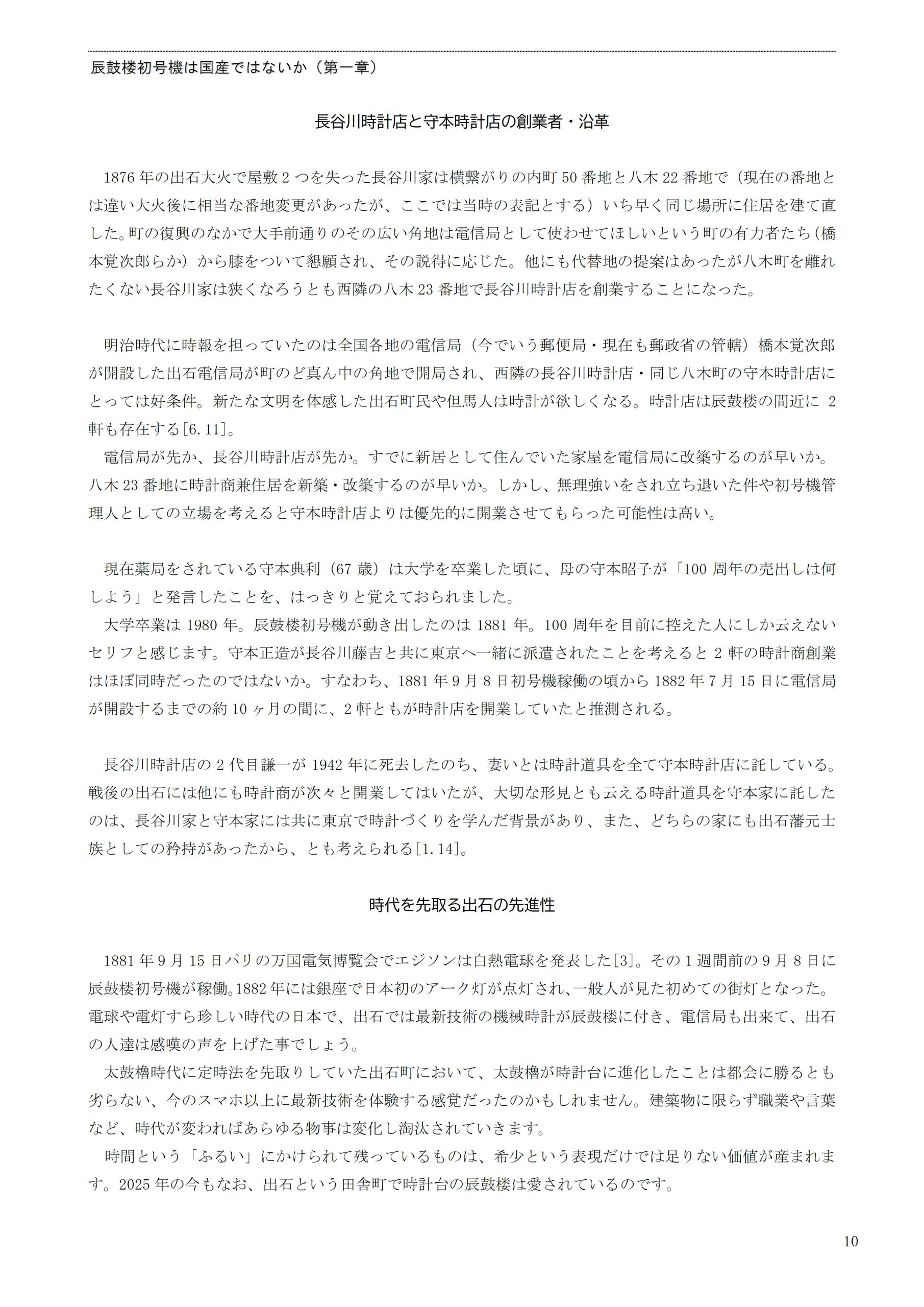 このページは 【3】辰鼓楼初号機は国産ではないか 第1章 2 長谷川時計店 と 守本時計店 です。