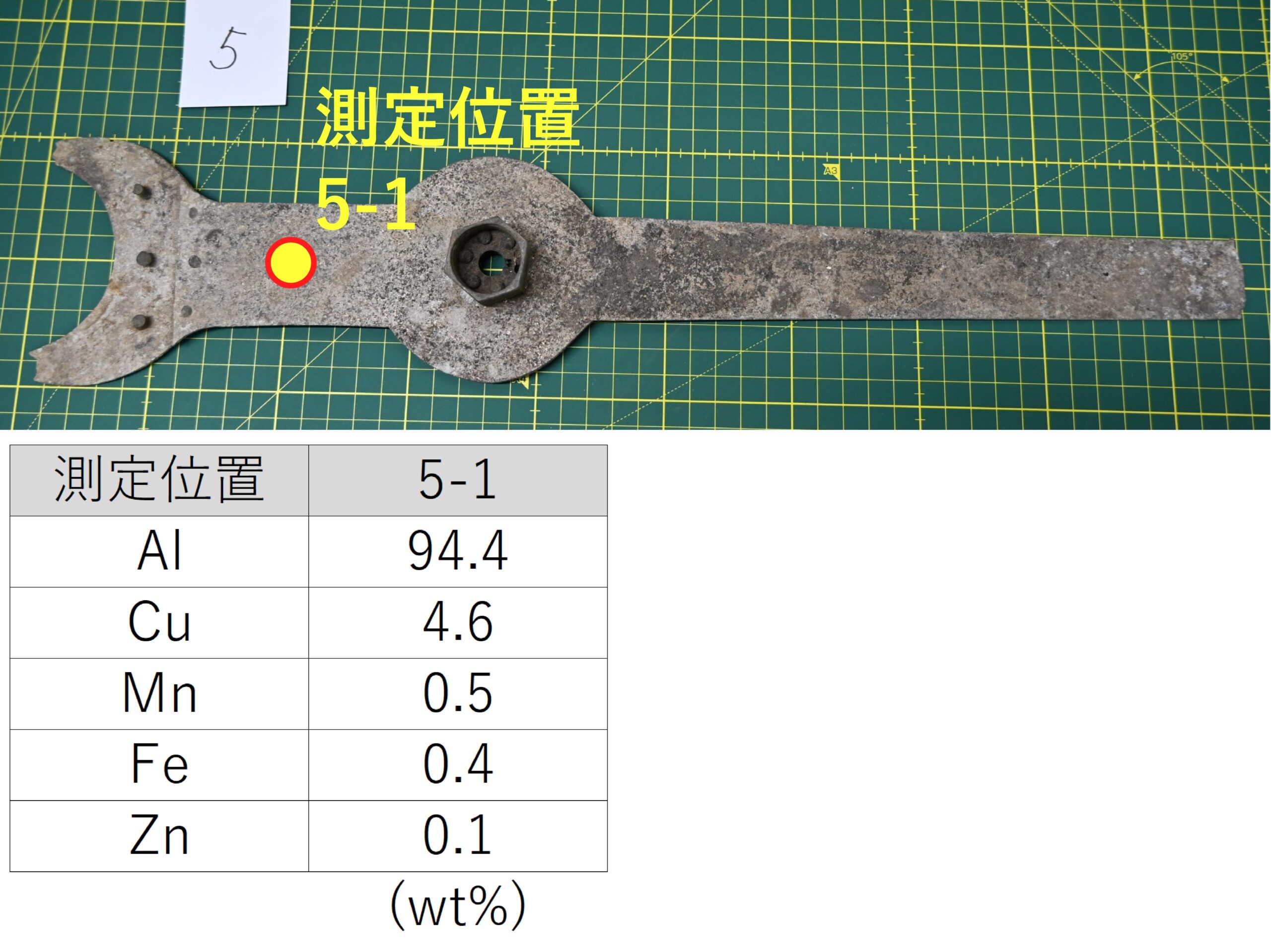 部品 – 5 の携帯型蛍光エックス線分析装置を利用した成分分析結果
